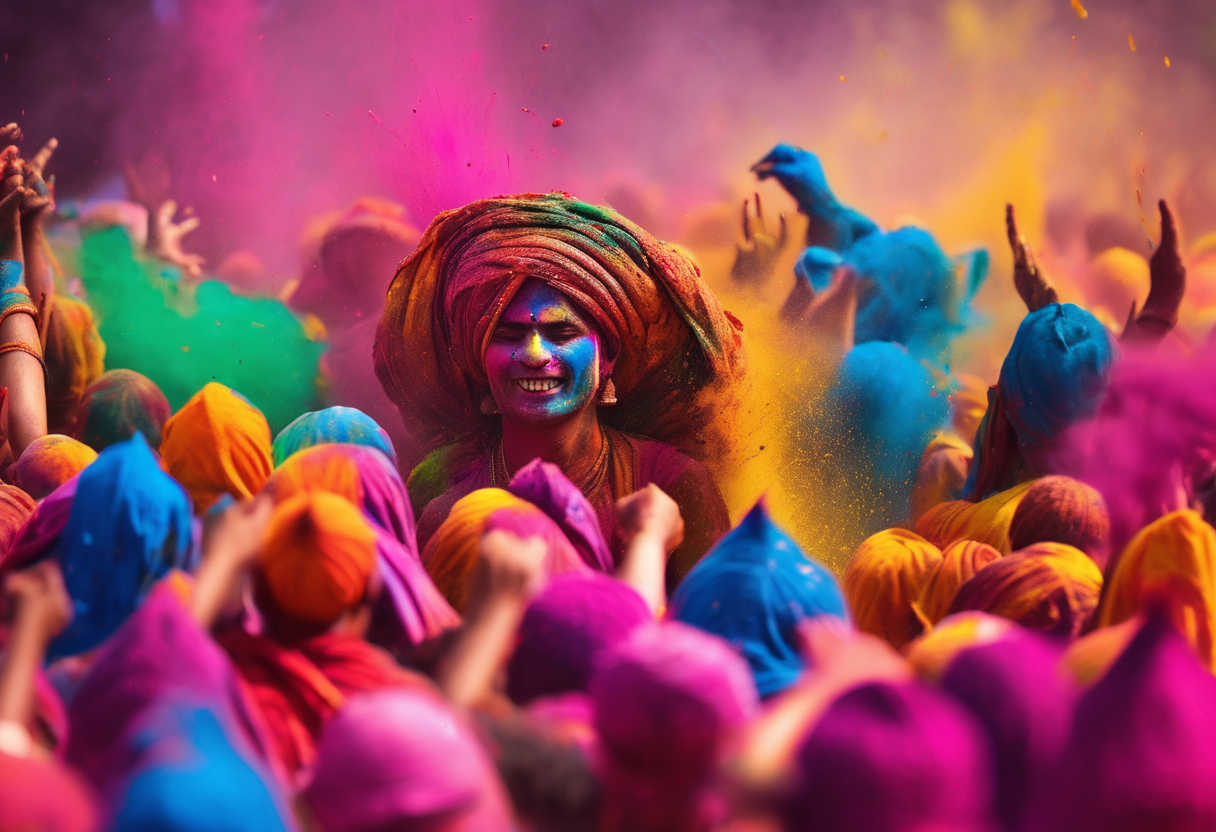 Holi is a festival celebrated with great joy and enthusiasm in India and other parts of the world. It is known as the festival of colors and is a celebration of the victory of good over evil. During this festival, people smear colored powder on each other, throw water balloons filled with colored water, and play with water guns. These bright and vibrant colors hold a special meaning and symbolism during Holi.